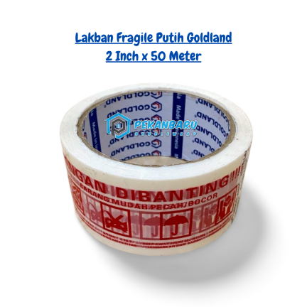 Kami menyediakan lakban fragile putih merk Goldland di Pekanbaru Riau untuk pembelian satuan ataupun per-roll.